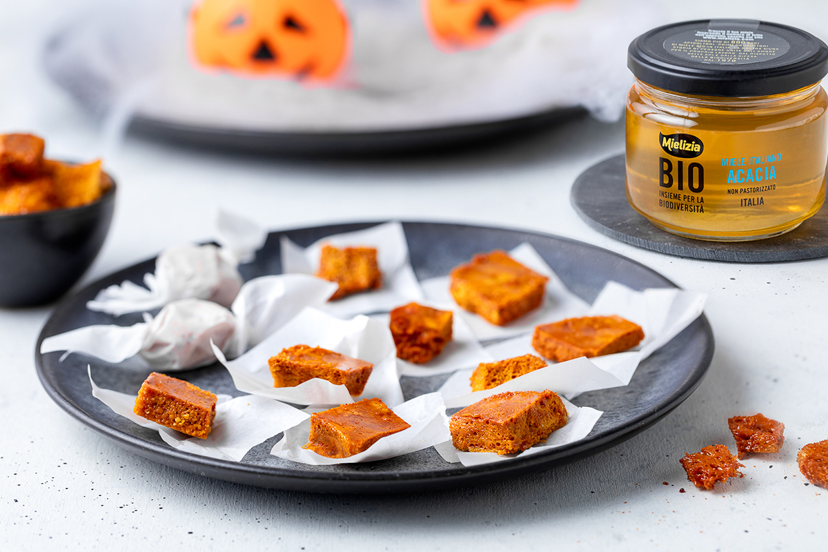 Una volta solidificato, spezzate il blocco ottenuto in modo irregolare oppure tagliatelo a quadrati con un coltello, così da ottenere delle caramelle.