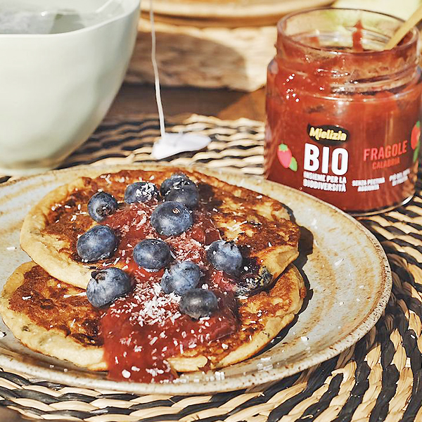 Completa con la composta biologica alle fragole Mielizia e dei mirtilli freschi.