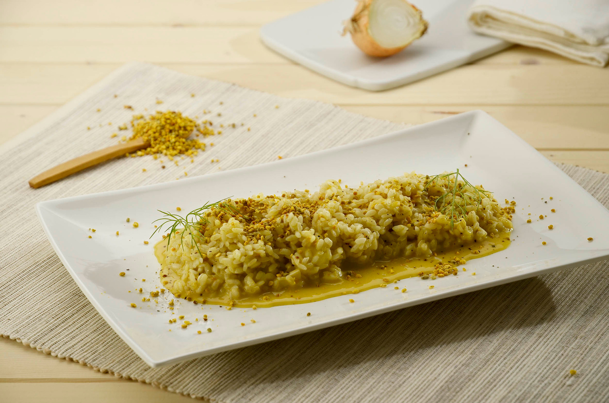 Coprire con un coperchio e far riposare per qualche minuto. Servire caldo, aggiungendo un’altra spolverata di polline per insaporire e decorare.